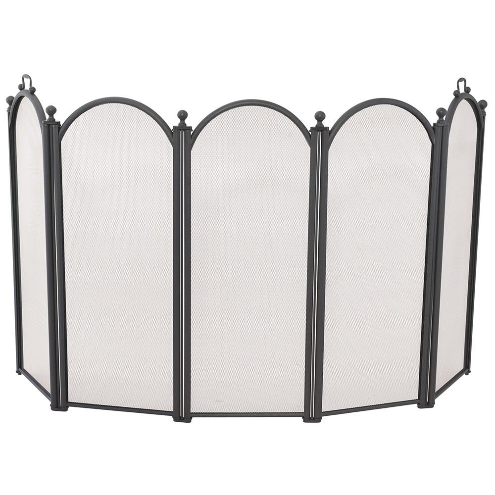 5 Piece Black Wrought Iron Fireset with Crook Handles