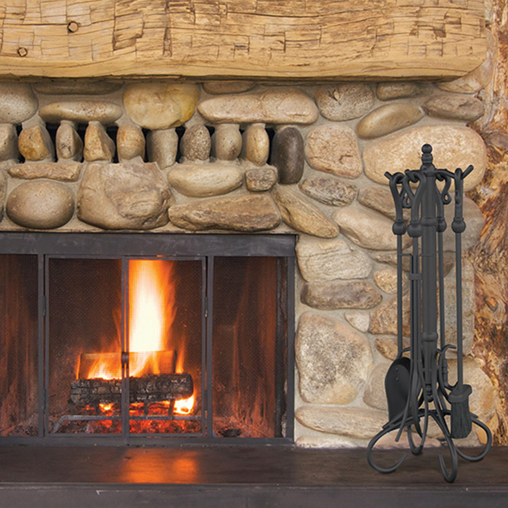 5 Piece Black Wrought Iron Fireset with Crook Handles