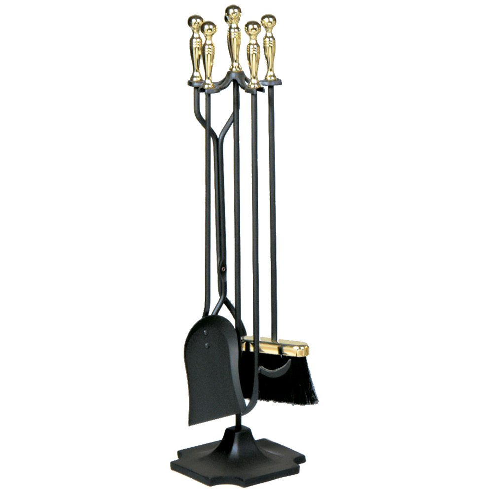 5 Piece Polished Brass and Black Finish Fireset with Ball Handles