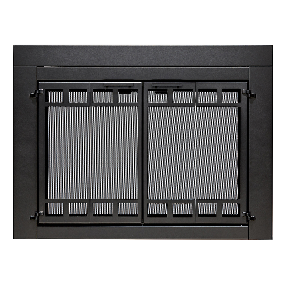 Full of style and function, the “Connor” Uniflame® Fireplace door adds style, safety and efficiency to your indoor, wood-burning, masonry fireplace. These bifold doors are a beautiful frame for a roaring fire. Always keep glass doors open when the fire is lit, or any heat is being emitted from the fireplace. The mesh screen panels behind the doors can be closed over the fire to prevent sparks, embers and debris.